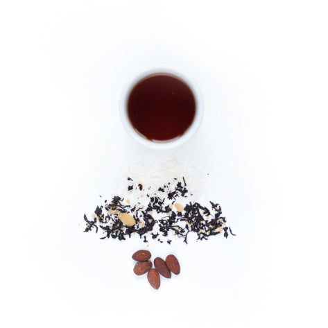 Ceylon and China black tea, coconut rasps, natural almond extract, and almond flakes.